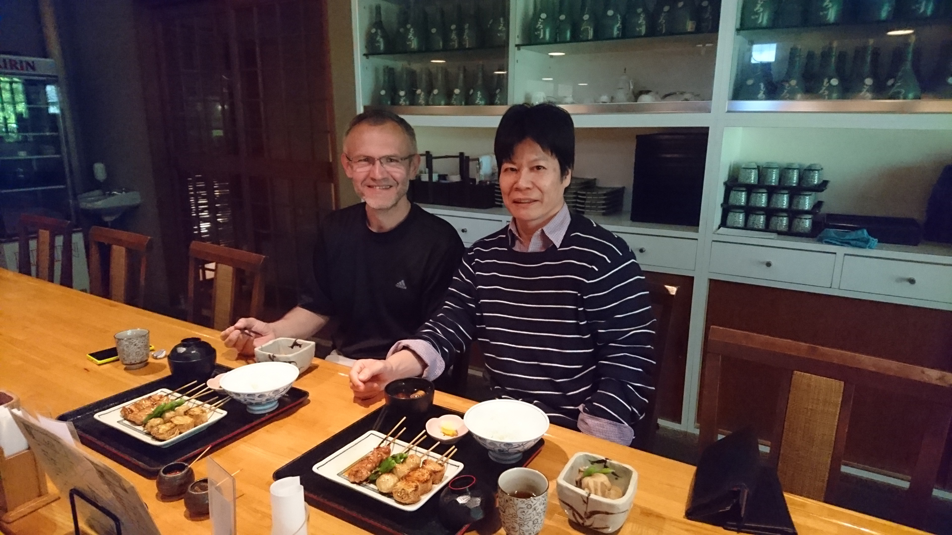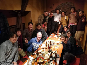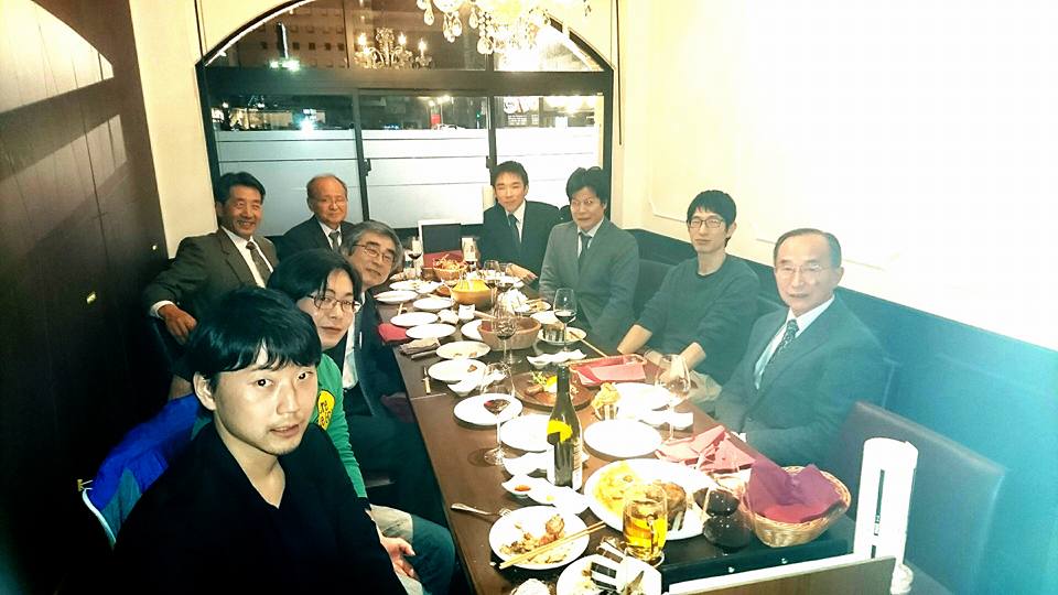 講演の後、富士脳研の齋藤 勇先生や田村晃先生、スタッフの皆さんと美味しいワインとお肉をいただいております。
