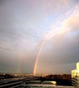 一昨日に大学病院の窓から見えたW虹Double Rainbowです。これが見られるのはとてもラッキーなことだそうで、「卒業」と「祝福」という意味もあるそうです。卒業生の皆さん、おめでとうございます。