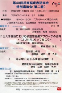 獨協医科大学の兵頭明夫先生と第40回目の節目となる岳南脳疾患研究会で講演させていただきました。