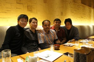 前日の打ち合わせのため、慶応大学元教授の河瀬先生、神戸大学の甲村教授らと食事。