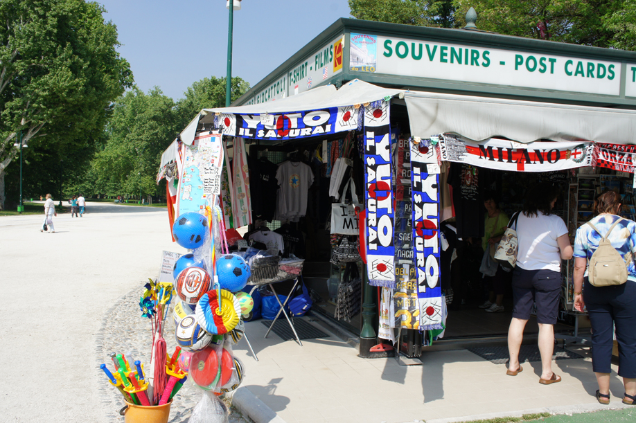 写真は、ミラノの公園のお土産やさんです。日本人観光客を目当てに長友グッズがたくさん売られてました。中国人観光客の方が圧倒的に多かったので売り上げはどうだったのでしょうか。