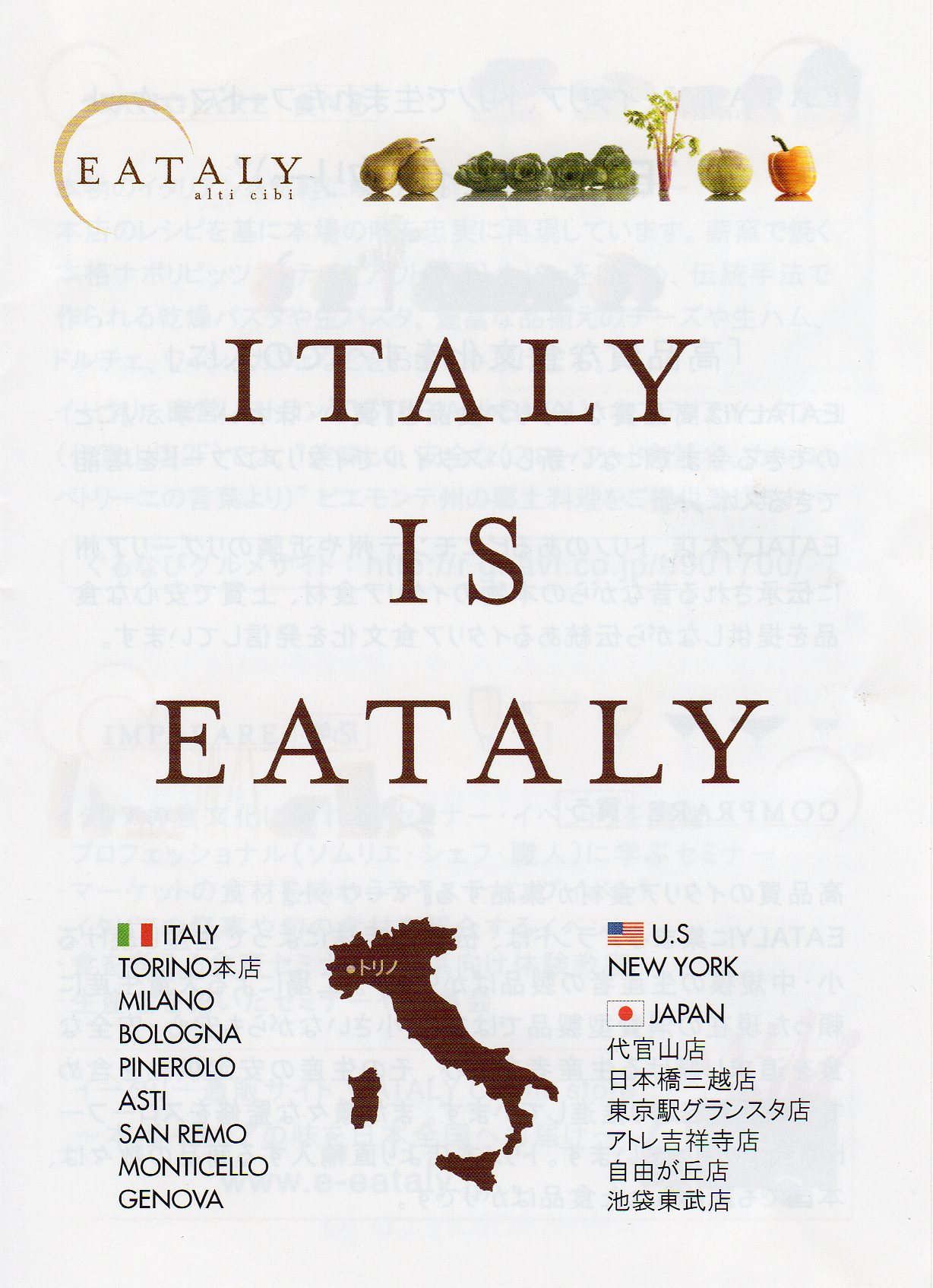 トリノで見つけた食料品店”Eataly”がなんと自宅から2.5Kmの代官山にあることを最近知りました。店舗の面積は恐らく5分の1くらいですが、大好きなパルミジャーノ レッジャーノを始め、いろんな食材が手に入ります。円高のせいか価格もさほど変わりません。しばらくはまりそうです。