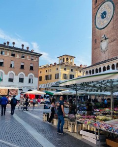 その前にあるコムーネ広場では朝市が開かれており、とても綺麗な花や野菜が売られていました。