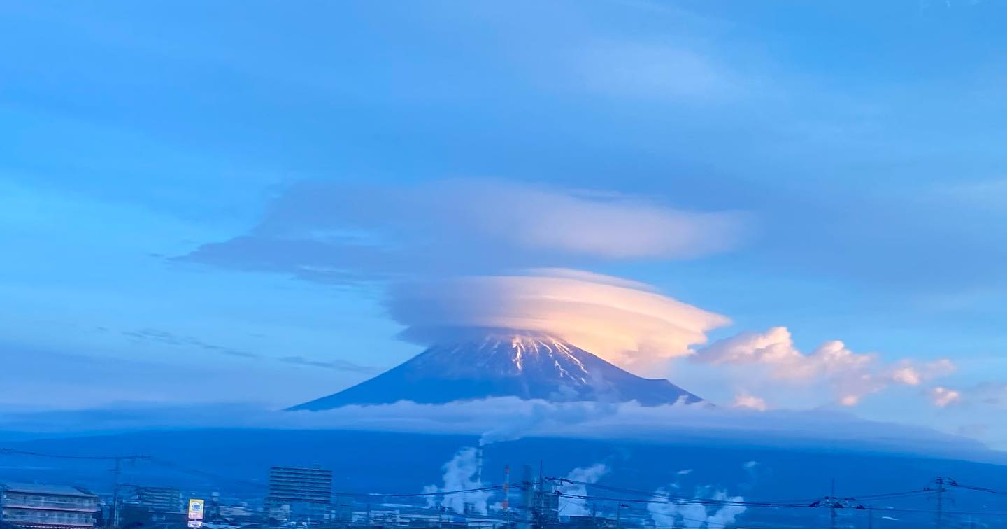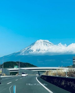 新富士駅あたりの新幹線の車窓からスマホで撮影した今朝の富士山です。