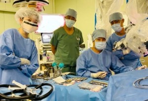 脳外科志望で現在亀田総合病院の研修医の先生が手術見学に来られました(向かって右端)。